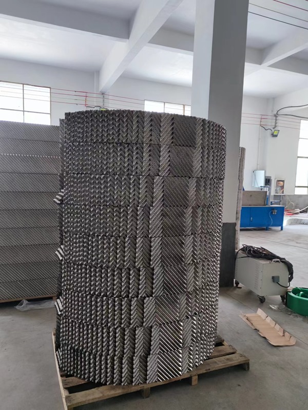 加工填料的塔徑范圍為φ150mm~12000mm以上。它是一種在塔內(nèi)按均勻幾何圖形排布,整齊堆砌的填料。它規(guī)定了氣液流路,改善了溝流和壁流現(xiàn)象,壓降可以很小,同時卻提供更多的比表面積,在同等容積中可以達到更高的傳質(zhì)、傳熱效果.還由于結(jié)構(gòu)的均勻、規(guī)則、對稱性,在與散裝填料具有相同的比表面積時,金屬孔板波紋填料的空隙率更大,具有更大的通量,綜合處理能力比板式塔和散裝填料塔大得多,因此以金屬孔板波紋為代表的各種通用型規(guī)整填料在工業(yè)中得到應(yīng)用。用金屬孔板波紋填料改造板式塔效果尤為明顯。通過精心設(shè)計、制造、安裝和認真操作等,可以做到工業(yè)放大效應(yīng)不明顯。由于規(guī)整填料具有壓降低、通量大、分離效率高等優(yōu)點,在精細化工、香料工業(yè)、煉油、化肥、石油化工等領(lǐng)域的眾多塔器內(nèi)得到廣泛應(yīng)用。如在原油油水、油氣、油水汽二相或三相分離器中使用效果良好,獲得用戶的一致好評。